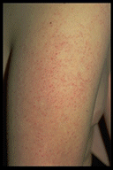 This is a condition affecting the outer surfaces of the upper arms and thighs. There are discrete, rough, horny papules around the hair follicles. It quite often accompanies atopic eczema.