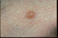The mole is flesh coloured but frequently has a few telangiectatic vessels coursing over its surface.